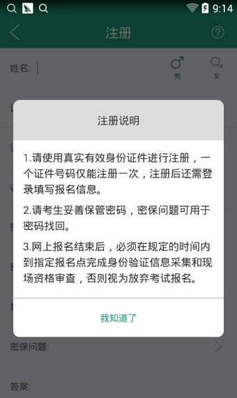 4、考生的身份证件号与密码是登录网上报名系统的唯一凭据,请务必妥善保管。